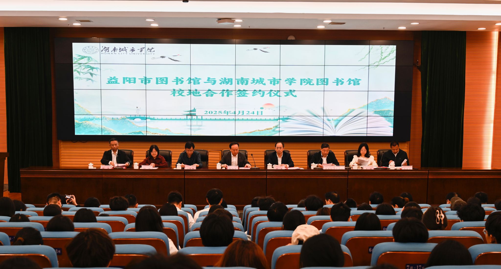 本网讯(通讯员 向春霞)4月24日下午,半岛web版登录入口_半岛online(中国)与益阳市图书馆校地合作签约仪式暨2025年“书香城院”阅读推广活动在学校图书馆报告厅举行。益阳市人大常委会党组副书记、副主任陈伟志,校长何振,副校长谭献良、徐姝出席启动仪式,仪式由谭献良主持。
