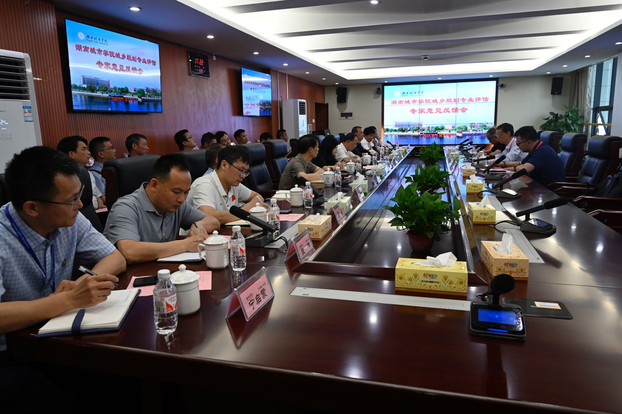 副校长雷存喜、徐姝,城乡规划专业负责人、原校党委书记汤放华,相关职能部门负责人和建筑与城市规划学院教师代表参加会议。