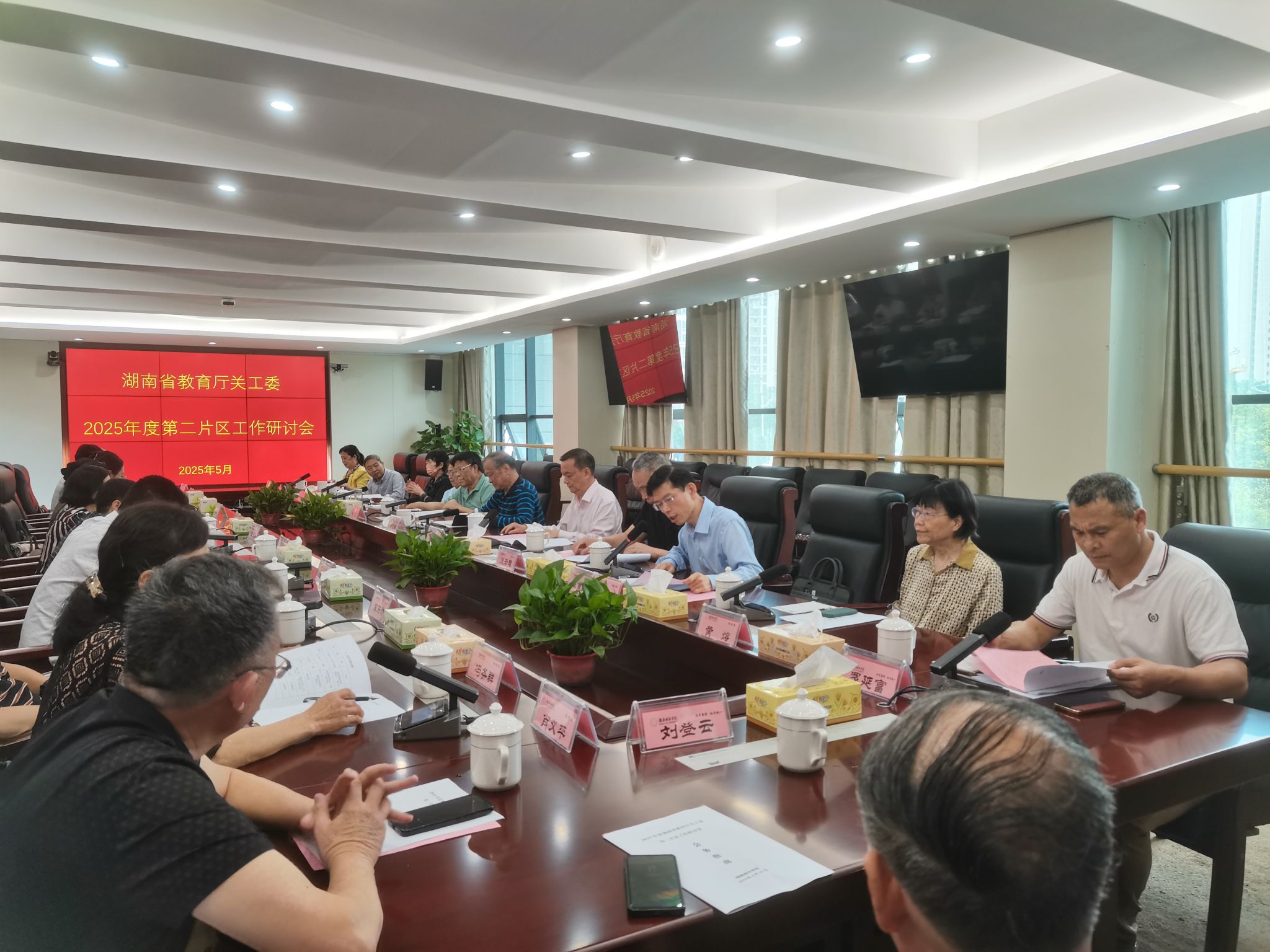 本网讯(通讯员 张艳霞 陈佩霞)5月15日,湖南省教育厅关工委第二片区2025年度工作研讨会在我校召开。省教育厅关工委常务副主任舒凡卿以及来自湖南大学、湖南工商大学等15所高校的关工委领导参加会议,副校长、关工委主任雷存喜出席会议并致辞。会议由湖南大学离退休处处长、校关工委副主任李勇军主持。