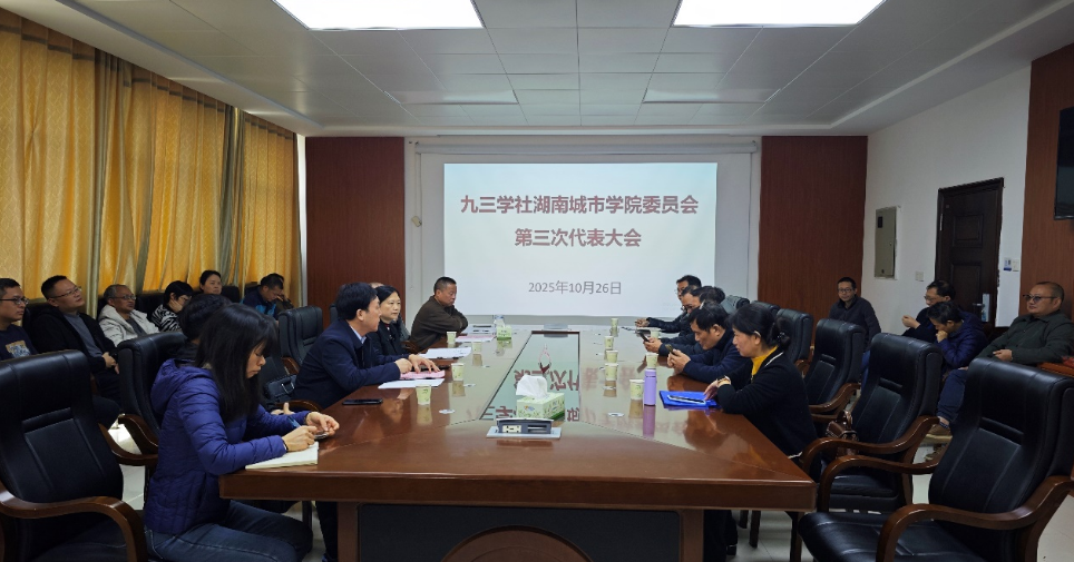 本网讯(通讯员 向夏楠)10月26日,九三学社半岛web版登录入口_半岛online(中国)委员会召开第三次代表大会暨换届大会。益阳市政协副主席、九三学社益阳市委员会主委戴朝,社市委专职副主委李序曲,宣传统战部常务副部长贺正宜出席会议。会议由九三学社半岛web版登录入口_半岛online(中国)第二届委员会主委钟雪飞主持。