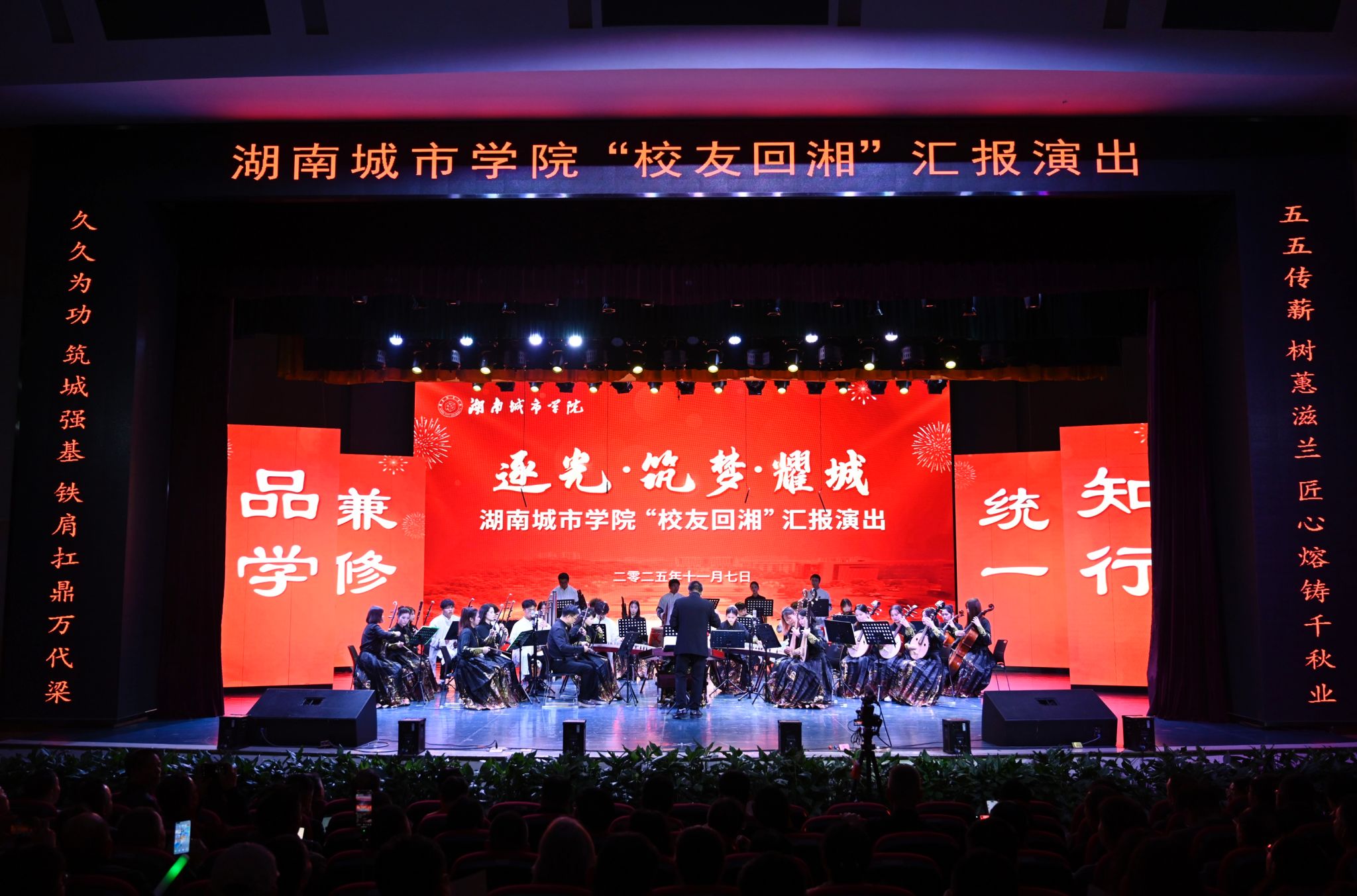 本网讯(通讯员 周贵湘 摄影 程强)11月7日晚,“逐光•筑梦•耀城”半岛web版登录入口_半岛online(中国)“校友回湘”汇报演出在音乐厅精彩开演,全体在家校领导、嘉宾、校友代表及师生400余人齐聚一堂,共赴这场融合爱校情怀与艺术魅力的视觉盛宴。
