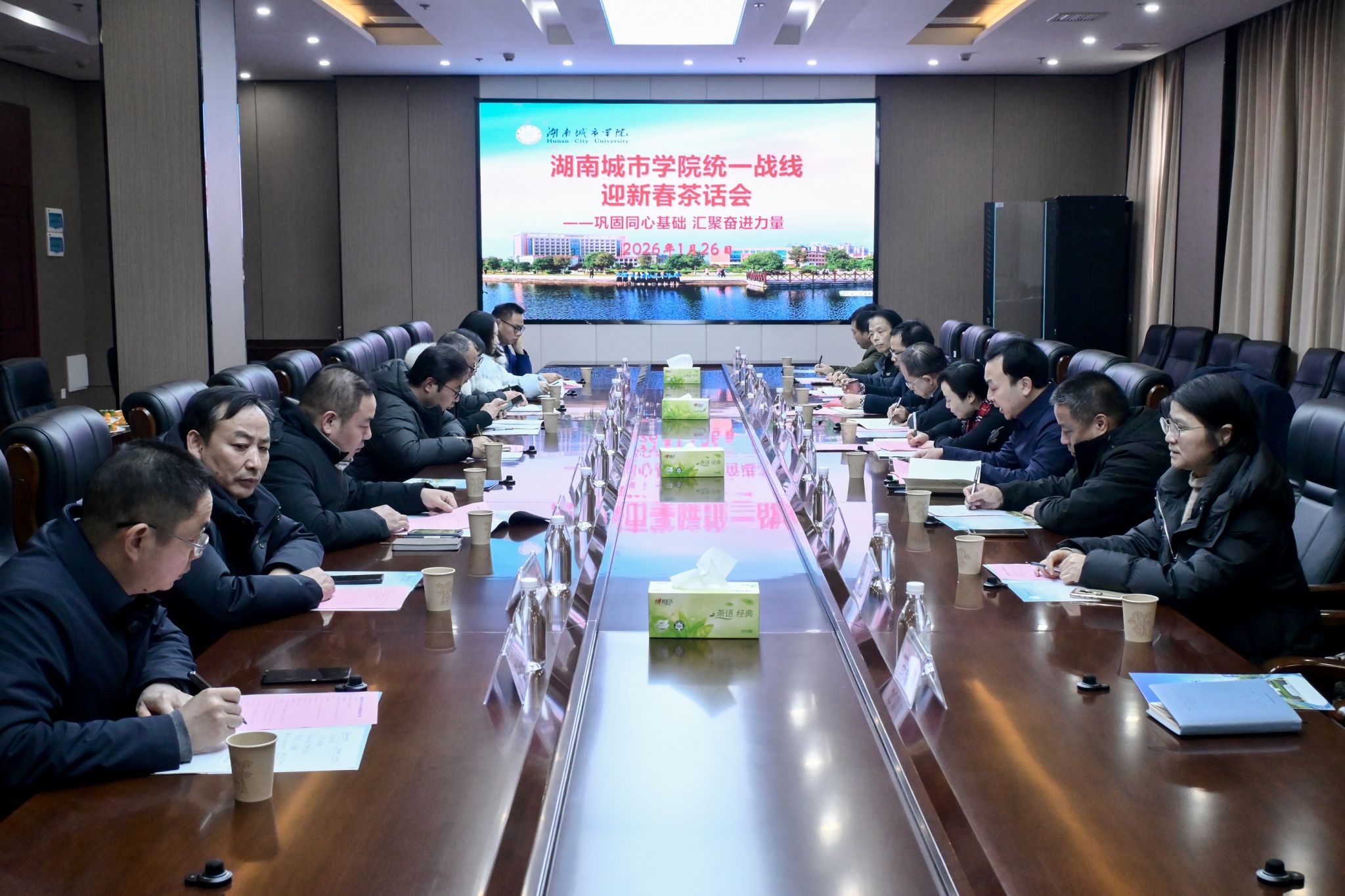 本网讯 1月26日下午,半岛web版登录入口_半岛online(中国)2026年统一战线迎新春茶话会举行。在校省、市政协委员,市民主党派兼职副主委,各民主党派校级组织主要负责人,校统战团体主要负责人,无党派人士代表等20余人欢聚一堂、喜迎新春、共叙情谊。校党委书记何振,校长陈瑜,党政办、宣传统战部负责人出席会议。茶话会由校党委副书记袁志成主持。