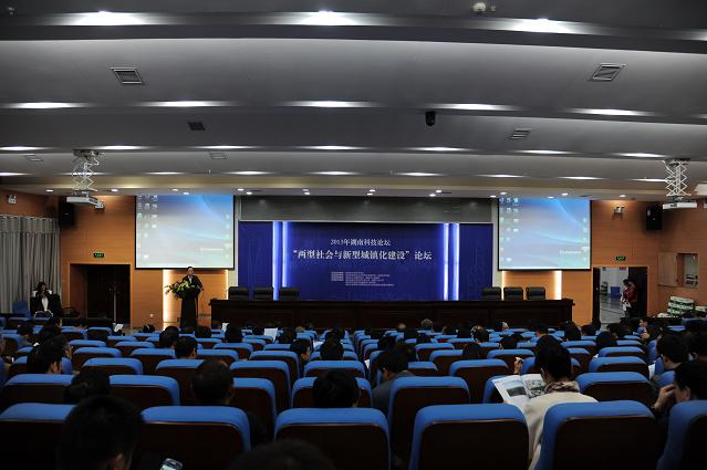(本网讯)11月2日,由湖南省科学技术协会主办,我校和省两型社会与城市科学研究会承办的2013年湖南科技论坛“两型社会与新型城镇化建设”论坛暨湖南省两型社会与城市科学研究会年会在我校逸夫图书馆报告厅隆重召开。湖南省科技厅、住房与城乡建设厅、省两型办、有关地州市领导和专家,城市科学研究会成员单位代表,我校师生代表300多人出席。