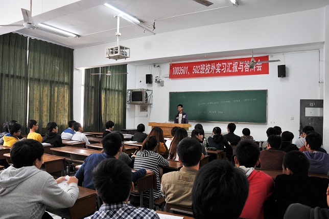 在答辩会现场,每一位学生都要上台介绍自己的工程实践情况、实习过程中对专业问题的思考、实习收获和体会,并回答导师针对实习提出的有关问题。导师根据学生回答问题的情况给出评分。