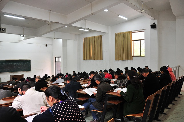 考试试题涉及多部近年新颁布的法律法规。考试中,参考者仔细审题,认真作答。校党委副书记、副校长龚卫明以及益阳市法制办相关负责人现场进行了巡考。