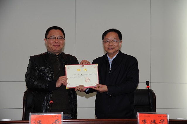 (本网讯)12月17日晚,著名作家浮石先生受聘为我校客座教授仪式暨学术讲座活动在校本部图书馆报告厅举行。仪式由文学院院长袁志成主持,校长李建华出席受聘仪式。文学院400余名师生参加此次活动。