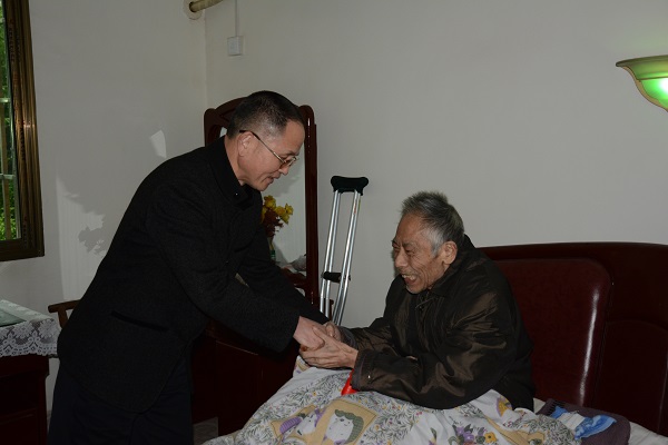 党委副书记、副校长龚卫明在朝阳校区家属区看望了正在积极治疗中的退休职工贺赛姣。他详细了解了贺赛姣的治疗情况并鼓励她要继续坚持治疗。