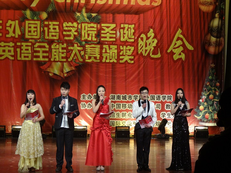 一年一度的圣诞晚会是一场精彩纷呈的中外语言与文化的盛宴,不仅增进同学们对异国文化的了解,丰富课余生活,还为广大学生提供了一个展现自我的良好平台。(郭晶晶)