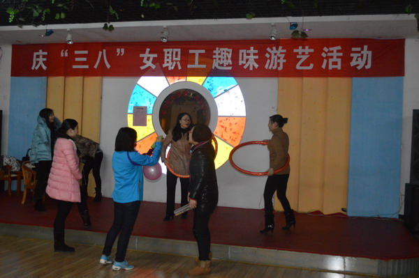 上午,工会在教工活动中心举行了女教职工趣味游艺活动,200多名女教职工参加了此次活动。游艺活动内容丰富,设有快乐呼啦圈、趣味保龄球、心有灵犀、双龙戏珠、瞎子击鼓、猜谜等9大项目,活动现场欢声笑语,热闹非凡。(周敏)