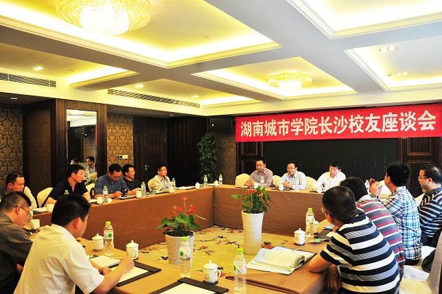 (本网讯)为深入贯彻落实好党的群众路线教育实践活动要求,密切联系校友,以调研促进学习,以学习引领实践,5月7日下午,校长李建华,党委副书记、副校长龚卫明,副校长严曙光一行6人赴长沙就“学校转型发展” 为主题与校友代表进行座谈交流。
