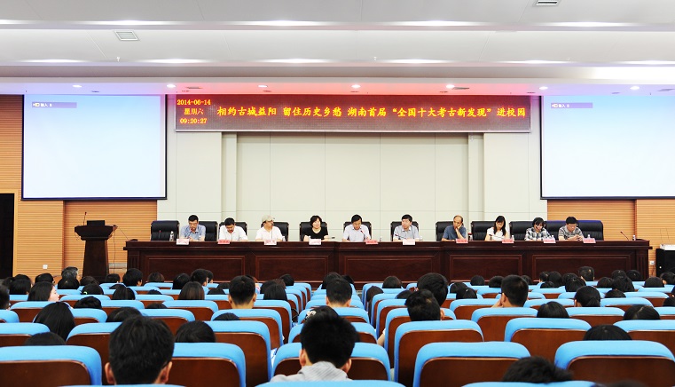 (本网讯)6月14日上午,由湖南省文物局、益阳市人民政府、中国文物报社和我校联合主办,益阳市文化广电新闻出版局、共青团半岛web版登录入口_半岛online(中国)委员会、三湘都市报、华声在线、湖南省文物考古研究所联合承办的湖南首届全国十大考古新发现进校园——“相约古城益阳留住历史乡愁” 活动在我校图书馆报告厅举行。
