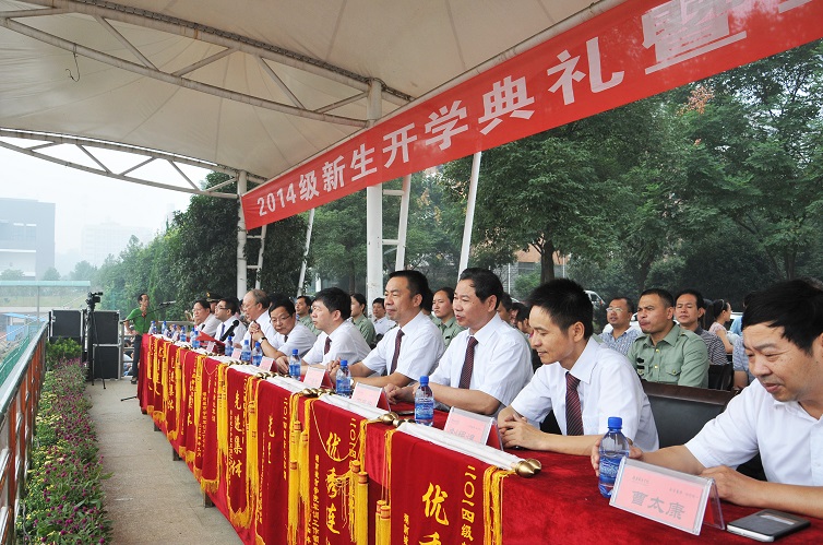 在庄严雄壮的国歌、校歌声中,典礼正式开始。校长李建华致辞,代表学校对4000余名新生表示欢迎和祝贺。他向同学们提出了几点希望:希望同学们学会学习,不仅要学好专业,还要学好通识,不仅学技术,还要学方法,不仅学知识,还要学做人;希望同学们学会生活,学会感恩,要在精神上有所追求,要锻炼好自己的身体,以乐观、积极、饱满、昂扬的心态去面对学习和工作;希望同学们学会做人,坚持立德修身,坚持立善求真,自觉培育和践行社会主义核心价值观,培养仁爱之心,树立行道之志,塑造高尚德操,以自己的所学所长回报社会,推动国家富强、民族复兴和人类进步。