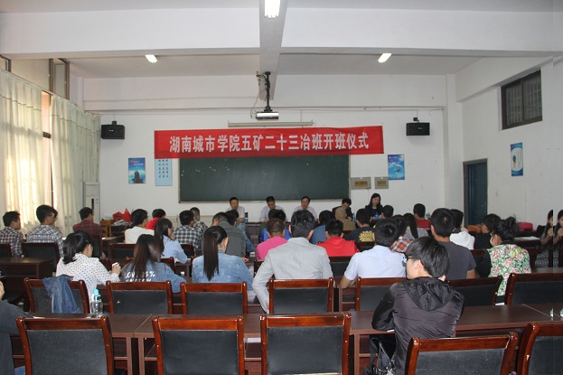 首先,刘嗣扬代表五矿二十三冶感谢我校领导的关心、老师的辛勤付出、学员的热情参与。刘经理指出,此次定向班适应了公司的发展需求,缩短了学生就业后的试用期,旨在提前培养企业优秀的员工,希望订单班的同学尽快进入状态,尽快融入五矿二十三冶这个大家庭。刘经理希望学员们全身心投入学习,学有所获、学有所感、学有所思,在学习中改变自我,提前进行角色转换,成长为企业需要的合格人才。随后,张丹丹介绍了校企合作班的教学培训模式,宣读了五矿二十三冶班的教学管理实习办法。我校教务处负责同志表示,五矿二十三冶校企合作班是我校推进校企产学研合作,推进人才培养质量保障体系建设的重要举措,教务处将加强与五矿二十三冶的沟通交流、协商解决教学中的问题,确保订单班的教学、管理等工作的顺利进行。