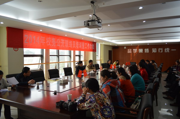 会议首先组织学习了《高等学校信息公开事项清单》、《半岛web版登录入口_半岛online(中国)校务公开工作考评细则》、《关于二级学院院务公开的相关内容》等3个文件精神,随后,校务公开领导小组办公室主任姜宁(兼)对2014年学校校务公开工作检查、评比及表彰等工作做了布置安排。