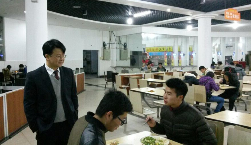 下午,副校长汤放华走访了学生食堂,对饭菜质量、价格和就餐环境进行了实地了解。