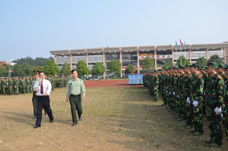 随后,校长李建奇在武装部部长贺正宜和国防科技大学指挥学院副指导员李旺军的陪同下,检阅了由2015级参训新生组成的方队。