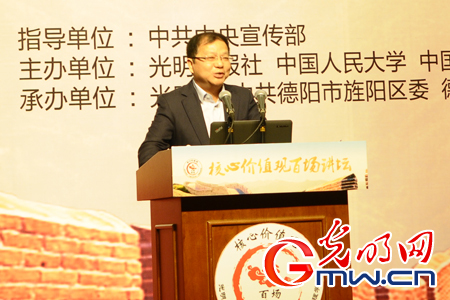 “核心价值观百场讲坛”是为深入推进社会主义核心价值观建设,落实《关于培育和践行社会主义核心价值观的意见》(中办发[2013]24号),根据《培育和践行社会主义核心价值观行动方案》(中宣发[2015]9号),按照中宣部的具体指导,光明日报社、中国人民大学、中国伦理学会共同举办,光明网承办的大型论坛活动。(新闻中心)