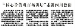 “核心价值观百场讲坛”是由中宣部指导,光明日报社、中国人民大学、中国伦理学会共同主办的全国性活动,活动邀请一流专家学者和核心价值观的践行典范,对社会主义核心价值观进行科学、生动、富有感染力的解读。(新闻中心)