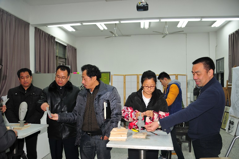 在听取了该院班子成员的情况汇报后,李建奇、龚卫明、孟昭武、严曙光一行实地查看了“中新班”教学区域,并参观了湖湘传统文化陈列厅、教授工作室、陶艺工作室、雕塑工作室等教学办公场地,了解目前现状及3+1联合办学中需要协调解决的问题。