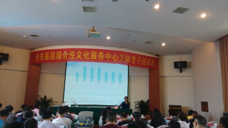 (本网讯)地方本科院校的转型发展、特色发展和内涵发展是高等教育发展“新常态”。利用高校体育学科优势、专业优势、专家优势和科研优势为地方文化体育事业发展提供智力支持是地方本科院校适应“新常态”的重要方式。4月11日—15日,由市文体广新局举办的“全市基层综合性文化服务中心文体专干培训班”在益阳举行,体育学院舒宗礼博士受邀为培训班讲课,对120多名乡镇文化体育专干进行业务培训。