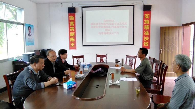 (本网讯)4月29日,党委副书记、副校长孟昭武与组织部相关负责人一行来到安化江南镇陈王社区村,看望和慰问了驻村工作队人员,并就2016驻村帮扶工作作出指示。