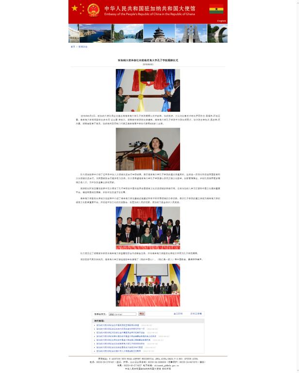 国务院新闻办公室网站、外交部网站、国家汉办网站、新华非洲网、中国侨网、中国日报、中国新闻网、中国教育新闻网、中国高校之窗、中国建设报、湖南省教育厅网站、湖南卫视、三湘都市报、湖南教育新闻网、益阳电视台、益阳日报、加纳华人论坛等二十余家网站和媒体进行专题报道或转载。