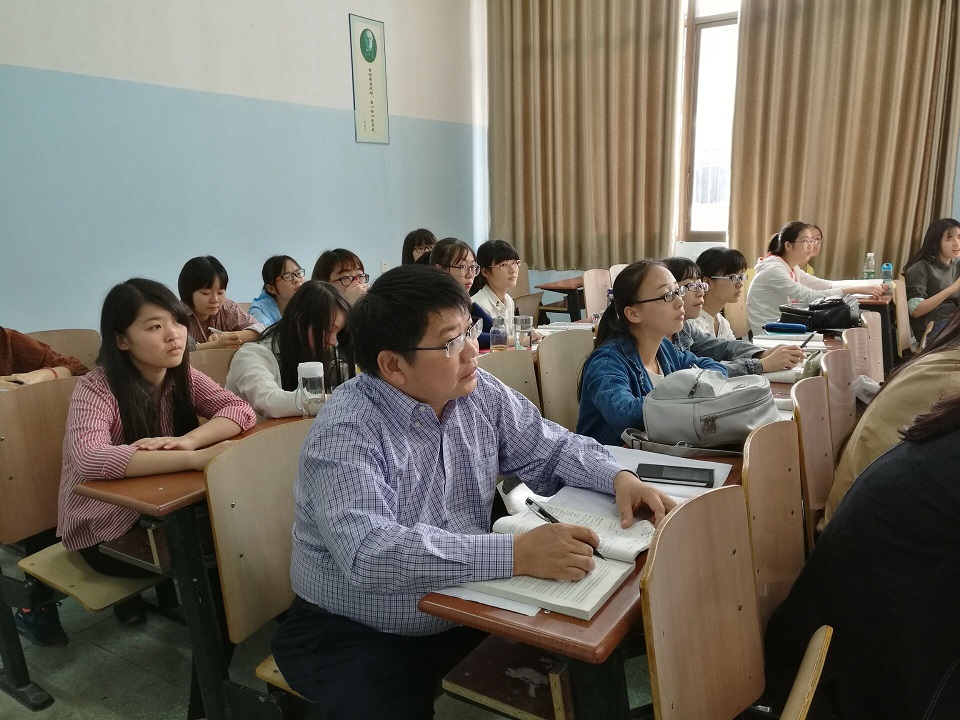 第三节课上课之前,罗成翼来到二教学楼414教师休息室,看望正在休息的外国语学院的教师们。