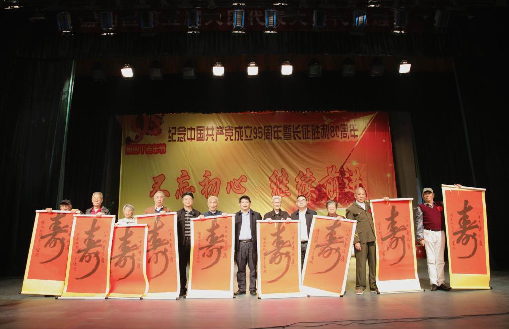 随后,罗成翼、汤放华、郑卫民为今年年满80岁、90岁的12位“寿星”献上了贺礼。