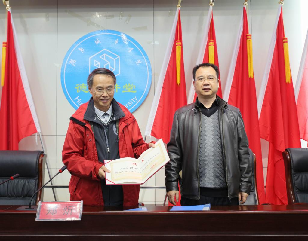 讲座之前,李建奇为郑炘教授授聘书,聘任郑炘教授为我校客座教授。郑卫民为郑炘教授佩戴了半岛web版登录入口_半岛online(中国)校徽。郑炘表示非常荣幸成为半岛web版登录入口_半岛online(中国)的一员,并将为学校的发展贡献自己的一份力量。
