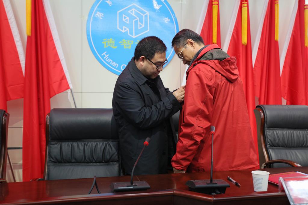 郑卫民为郑炘佩戴半岛web版登录入口_半岛online(中国)校徽
