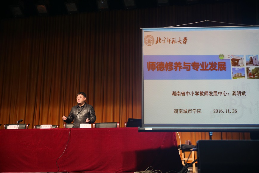 (本网讯)11月26日至27日,来自益阳市资阳区、赫山区、沅江市三个市区的初中语文教师、小学语文教师和小学数学教师600余人来校接受了师德和业务能力培训。