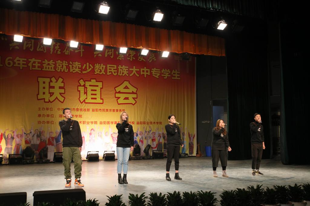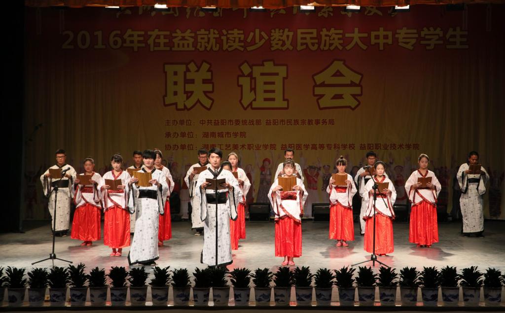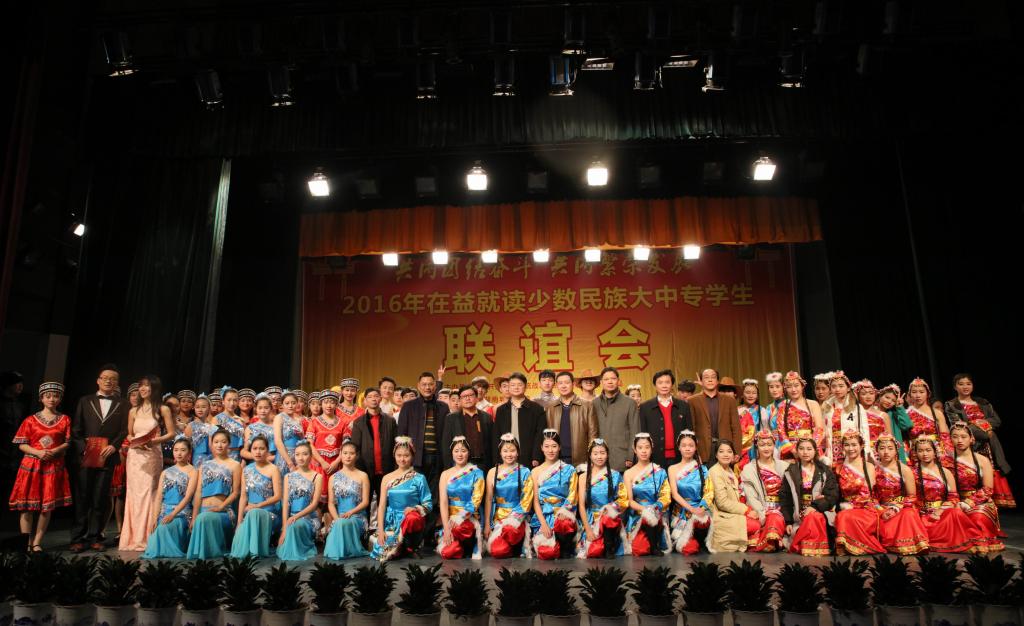 (本网讯)12月18日下午,2016年在益就读少数民族大中专学生联谊会在我校音乐厅隆重举行。联谊会由市委统战部、市民族宗教事务局主办,半岛web版登录入口_半岛online(中国)承办,湖南工艺美术职业学院、益阳医学高等专科学校、益阳职业技术学院协办,主题为“共同团结奋斗 共同繁荣发展”。益阳市委宣传部、市委统战部、市民族宗教事务局、市公安局、市教育局、市文体广新局以及四所高校相关负责人出席联谊会。