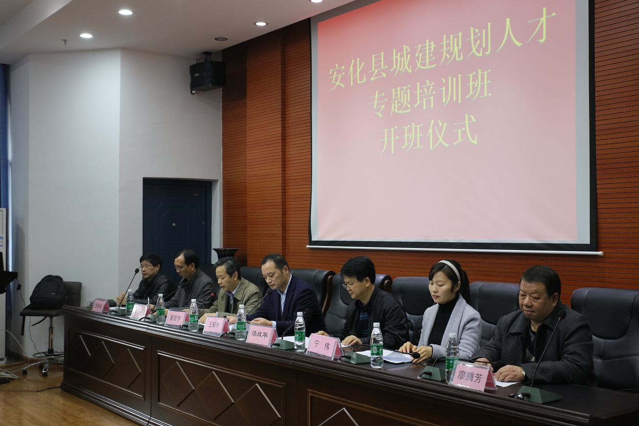 (本网讯)作为我校与安化县开展校地合作的重要项目之一,安化县城建规划人才专题培训班于2月20上午在我校土木楼报告厅正式开班。党委副书记汤放华,副校长夏宏宇,党委委员、组织部长罗新湘和继续教育学院负责人出席开班仪式。安化县委副书记王新宇,县委常委、组织部部长陈飞燕以及该县组织部、干教办相关负责人,该县各级城建规划系统选派的50名学员参加仪式。开班仪式由夏宏宇主持。