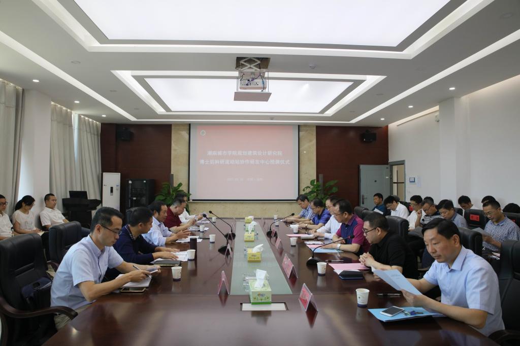(本网讯)5月16日,学校在设计院会议室举行博士后科研流动站协作研发中心授牌仪式暨博士后开题报告会。党委书记罗成翼,校长李建奇,副校长郑卫民、何振、谭献良出席会议,中南林业科技大学党委书记赵运林、省人社厅专技处处长周建中,省人社厅专家中心主任张跃雄,湖南省水资源研究和利用合作中心主任张灿明、中南林业科技大学人事处处长张合平及学校相关部门负责人出席会议。