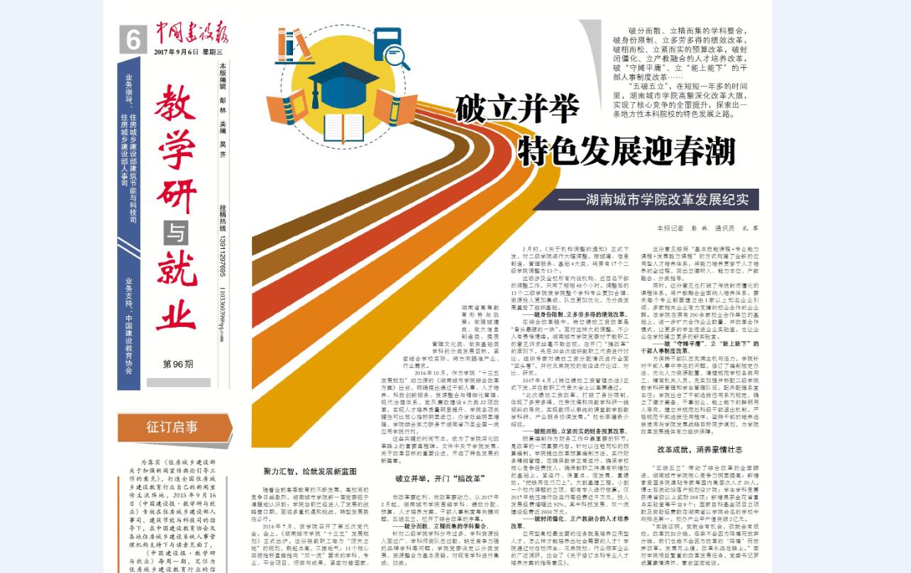 《中国建设报》第六版报道我校改革成就