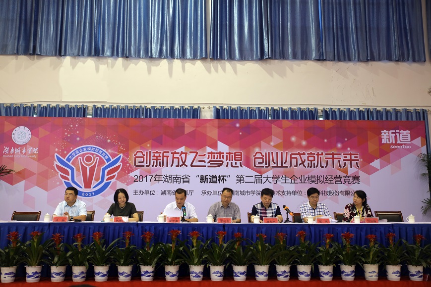 (本网讯)9月22日至24日,2017年湖南省“新道杯”第二届大学生企业模拟经营竞赛在我校体育训练馆隆重举行,大学生企业模拟经营竞赛属省级大学生学科竞赛。此次大赛由湖南省教育厅主办,半岛web版登录入口_半岛online(中国)承办,新道科技股份有限公司提供技术支持。来自省内35所高校的71支代表队,共355名选手参加比赛。我校荣获组织奖,管理学院派出的三支参赛队伍分别获得一等奖(1个)、二等奖(2个),成绩斐然。
