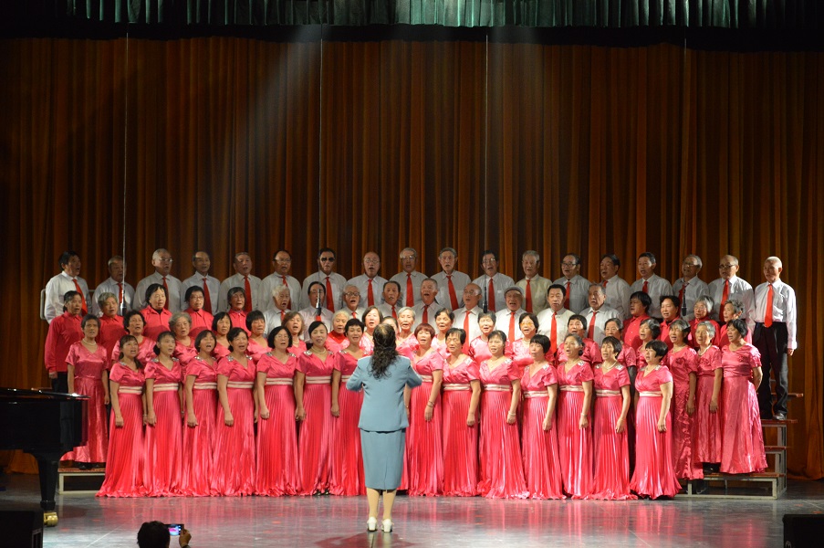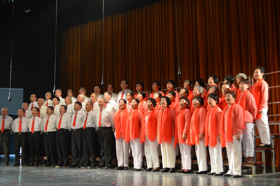 在庄严的国歌声中,庆祝大会正式拉开序幕。大会由汤放华主持。会上,离退休老同志们表演了“庆祝十九大 争做新贡献”主题大合唱。整齐的着装、嘹亮的歌声,处处体现了新时代老同志健康的精神面貌。