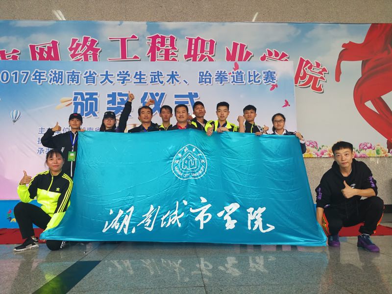 (本网讯)10月27日至31日,由湖南省教育厅主办、湖南省学生体协执行、湖南网络工程职业学院承办的2017年湖南省大学生武术、跆拳道比赛在湖南网络工程职业学院举行。来自全省37所高校的668名武术、跆拳道运动员参加了此次比赛,其中参加大学组跆拳道比赛的有19所高校,我校学子在比赛中努力拼搏,取得了1金2银6铜,团体总分第五名的好成绩。
