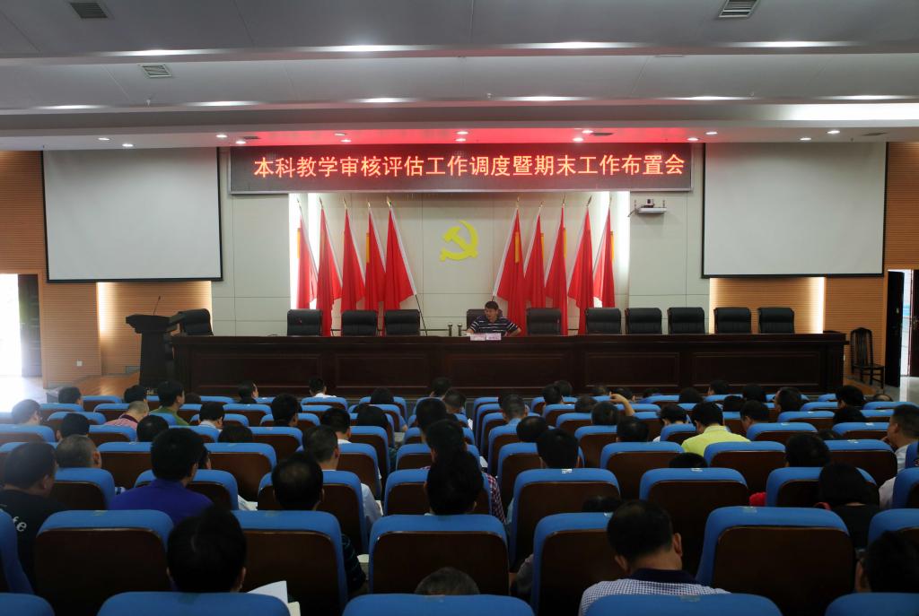 (本网讯)2018年7月13日,学校在图书馆报告厅召开本科教学评建工作调度会暨期末工作布置会,在家的校领导出席会议,处级以上干部,二级学院系、室(中心)主任、教学科研办主任,教务处、教学质量监控与评估中心全体人员参加了会议。会议由党委书记罗成翼主持。