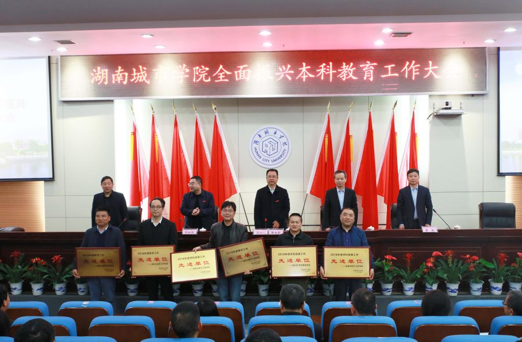 (本网讯)为进一步落实全国教育大会与新时代全国高等学校本科教育工作会议精神,全面提高学校本科教育水平和人才培养能力,研究部署本科人才培养工作,2019年4月12日,我校全面振兴本科教育工作大会在图书馆报告厅举行。在家的校领导,副处级以上干部、督导团团长、教学科研办主任、系(室、中心)主任,教务处、教学质量监控与评估中心全体成员,全体辅导员、二级学院教师及学生代表共270余人参加会议。会议由学校党委副书记汤放华主持。