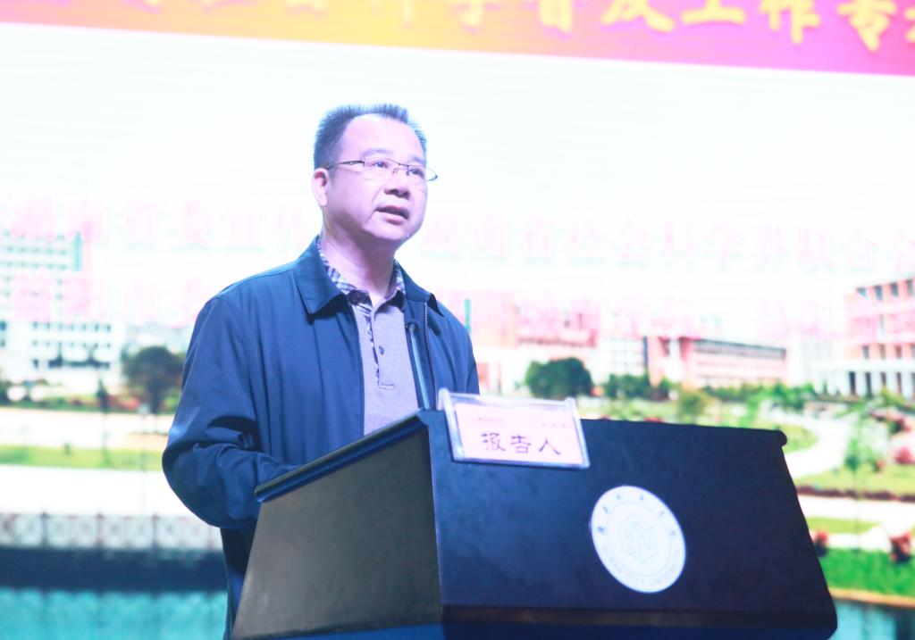 随后,省人大常委会法制工作委员会主任吴秋菊和红网新媒体集团党委副书记、总编辑贺弘联,分别就“深入推动《湖南省社会科学普及条例》贯彻落实”、“社科普及与新媒体融合发展”等进行了深入的讲解和分析。益阳市社科联、湖南党史陈列馆、半岛web版登录入口_半岛online(中国)湖湘传统美术研究基地、长沙市启园心理援助与发展中心等4家单位负责人作了社科普及工作先进经验交流发言。