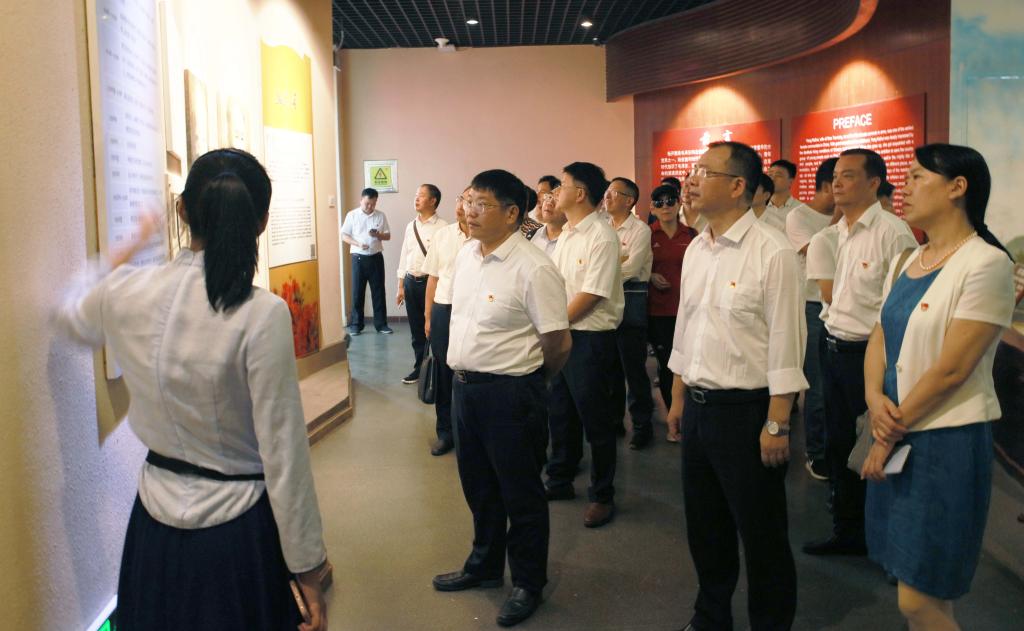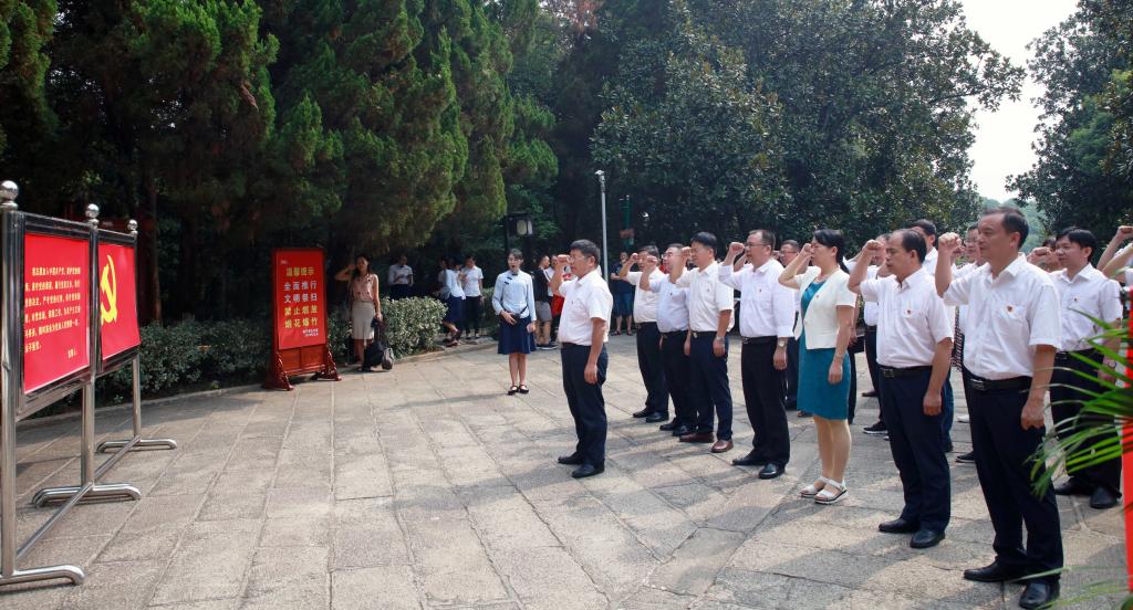 全体同志首先来到杨开慧烈士纪念地,瞻仰了开慧烈士陵墓。1930年10月,杨开慧同志因军阀密探发现而被捕,她严辞拒绝退党并坚决反对发表声明与毛泽东脱离关系,被军阀残忍杀害,年仅29岁。在庄严肃穆的气氛中,同志们为开慧烈士敬赠花篮,在党委书记罗成翼领誓下,面对党旗庄严宣誓,重温入党誓词,学习革命烈士永不叛党的忠诚信仰。随后,同志们参观了杨开慧烈士纪念馆、故居。开慧烈士在父母家学熏陶和亲密战友与丈夫毛泽东的指导下,抛却殷实的家庭条件,坚定选择马克思主义,奉献自己的一切走向劳苦大众,献身共产主义运动。在严重白色恐怖之时,在与上级组织失去联系的情况下,丈夫不在身边的杨开慧带着三个孩子组织和领导多地武装斗争,发展党的组织,坚持革命斗争。杨开慧烈士短暂却壮丽的一生、所展现的崇高风范和革命气节,深深打动了瞻仰参观的所有同志。