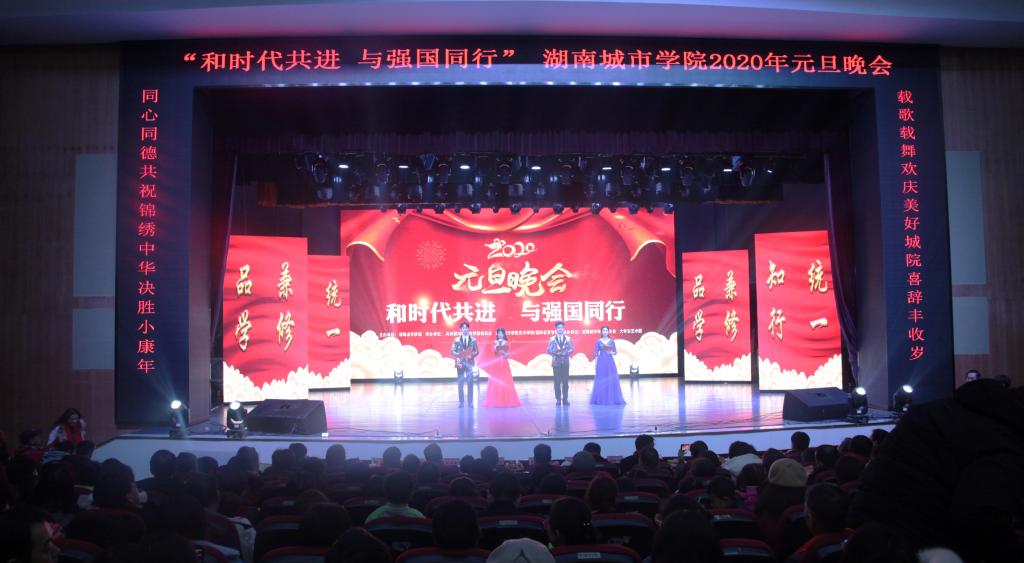 (本网讯)“载歌载舞欢庆美好城院喜辞丰收岁,同心同德共祝锦绣中华决胜小康年。”2019年12月29日晚、30日晚,“和时代同进,与强国同行”半岛web版登录入口_半岛online(中国)2020年元旦晚会隆重举行。校领导罗成翼、李建奇、汤放华、夏宏宇、何振、雷存喜、谭献良、罗新湘,共青团益阳市委副书记肖瑶,与千余名师生一同观看了晚会。