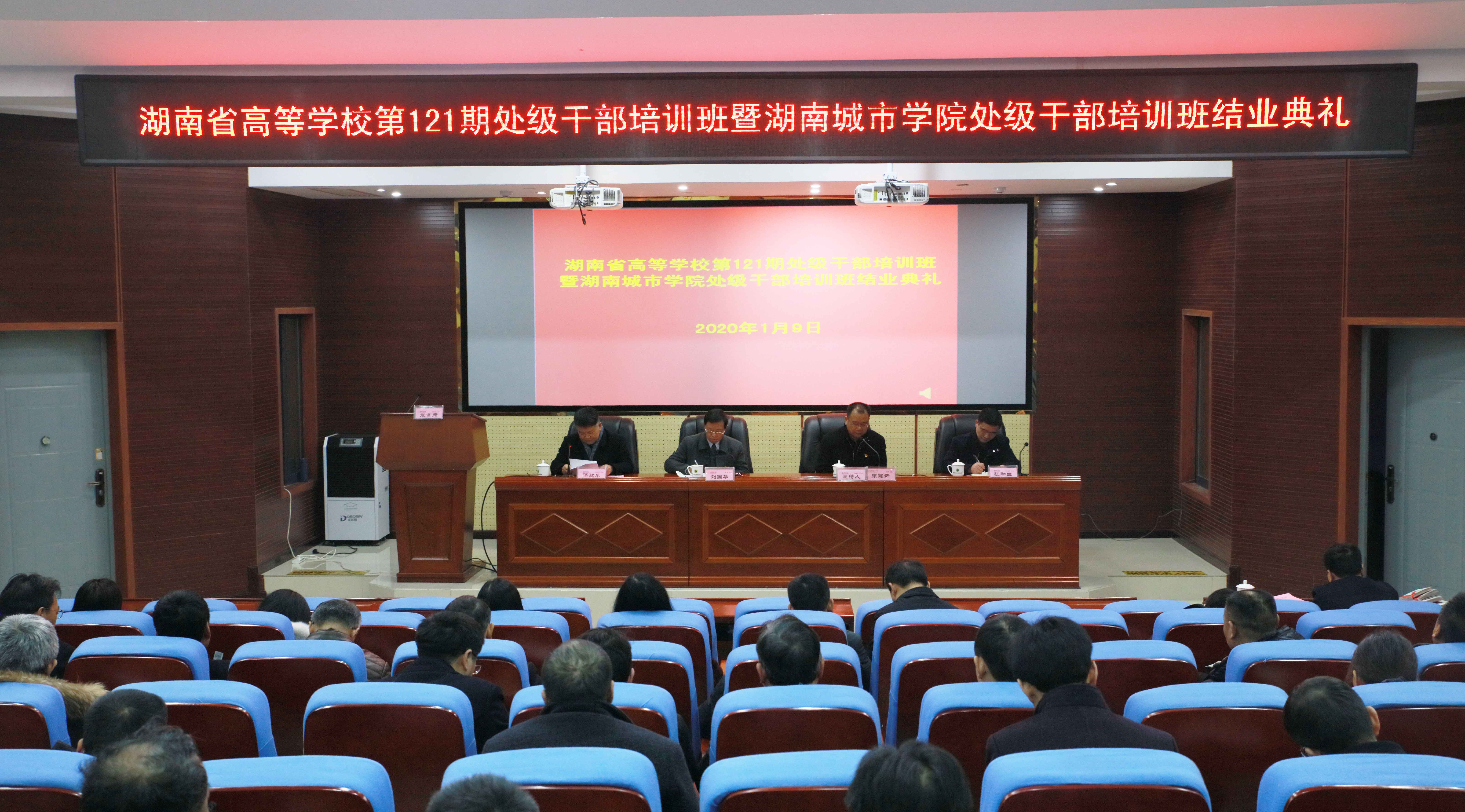 (本网讯)2019年1月9日,湖南省高等学校第121期处级干部培训班暨半岛web版登录入口_半岛online(中国)处级干部培训班结业典礼在我校图书馆报告厅举行。湖南省高校干部培训中心主任、书记,省委教育工委党校常务副校长刘国华,省高校干部培训中心副主任张和生,党委副书记汤放华,党委委员、组织部长袁志成出席。结业典礼由党委副书记、校长李建奇主持。