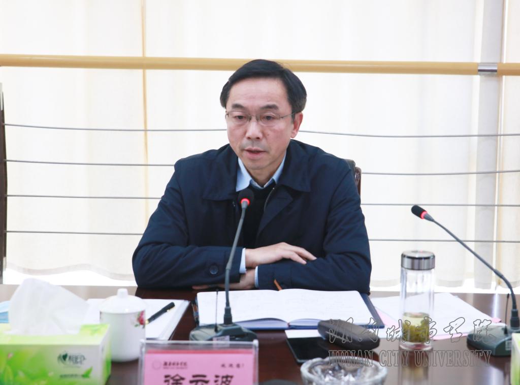 本网讯 2020年3月18日,益阳市人大常委会党组书记、常务副主任徐云波,市人大常委会副主任刘时贵、副市长刘国龙、市人大常委会秘书长杨光辉,来我校就教学培训国际交流合作情况调研。