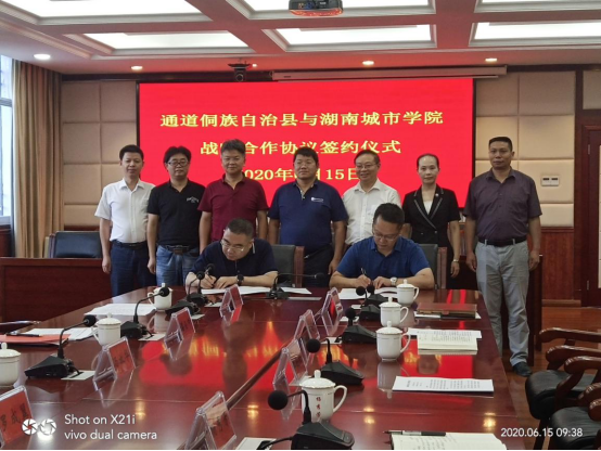 在仪式上,副校长郑卫民和通道侗族自治县副县长杨通朗签订了《通道侗族自治县人民政府与半岛web版登录入口_半岛online(中国)战略合作协议》。
