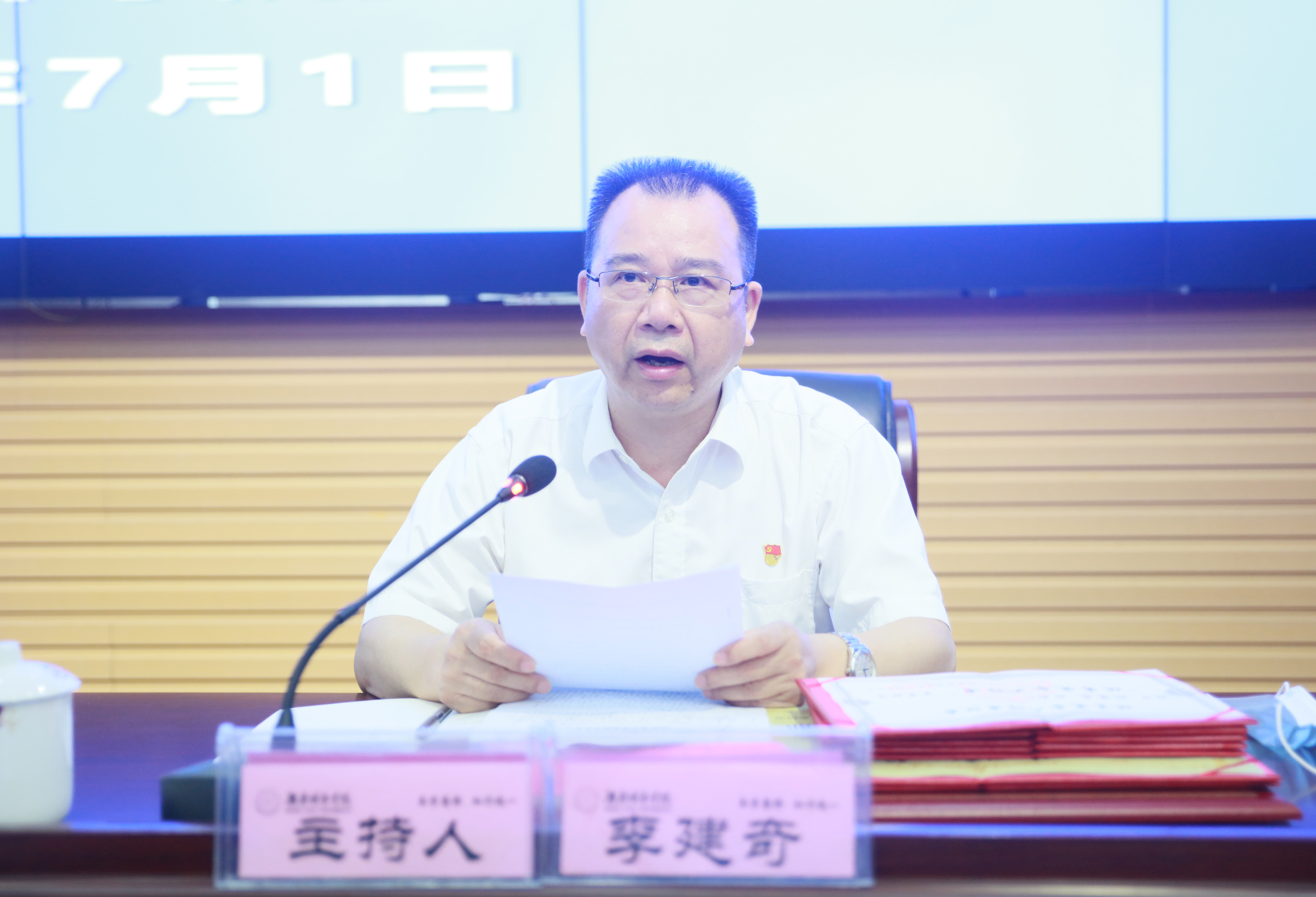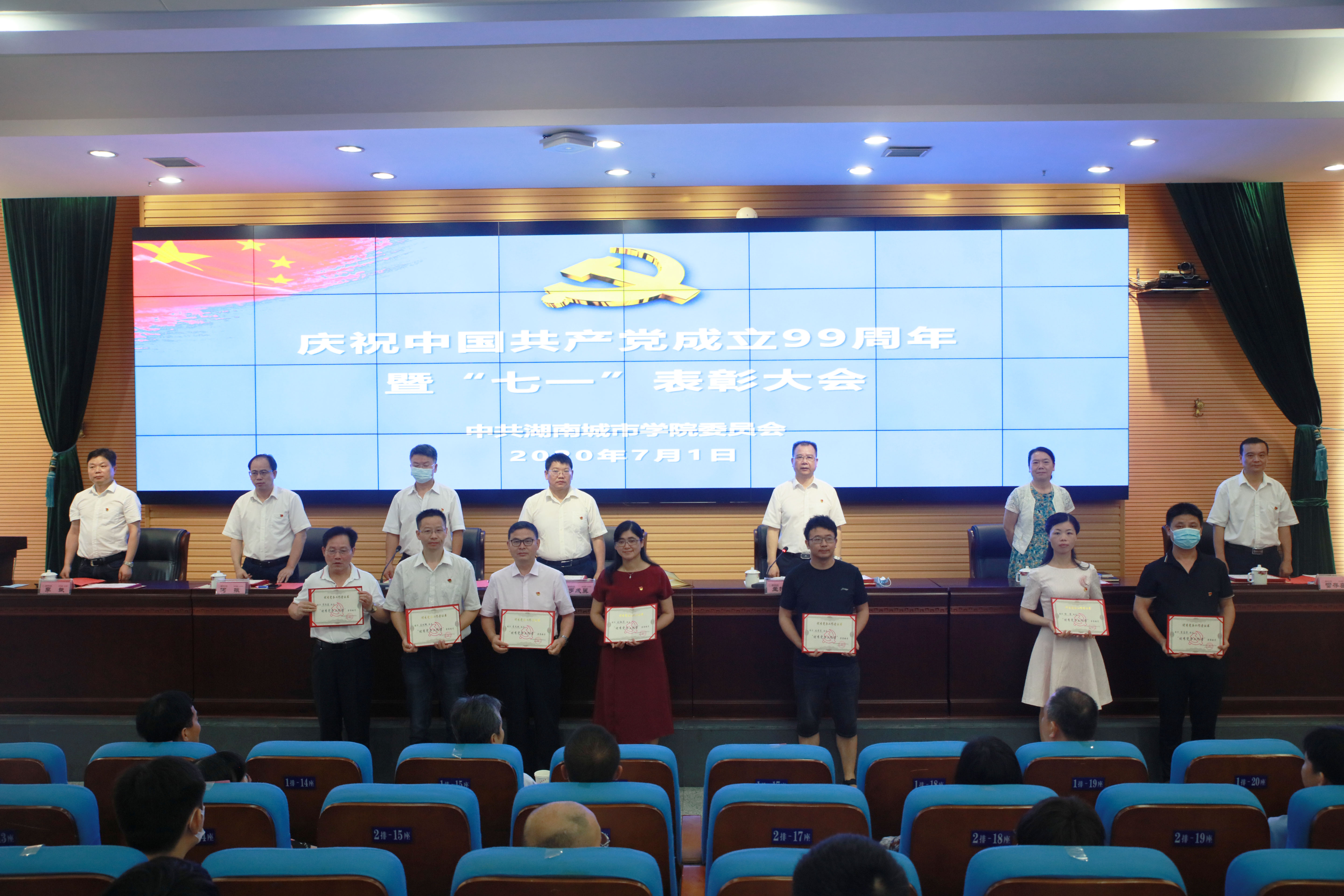 本网讯(通讯员 冷红)2020年7月1日上午,半岛web版登录入口_半岛online(中国)庆祝中国共产党成立99周年暨“七一”表彰大会在逸夫图书馆报告厅举行,在家的校领导、受表彰对象、副处级以上党员领导干部、党支部书记代表参加会议。会议由党委副书记、校长李建奇主持。