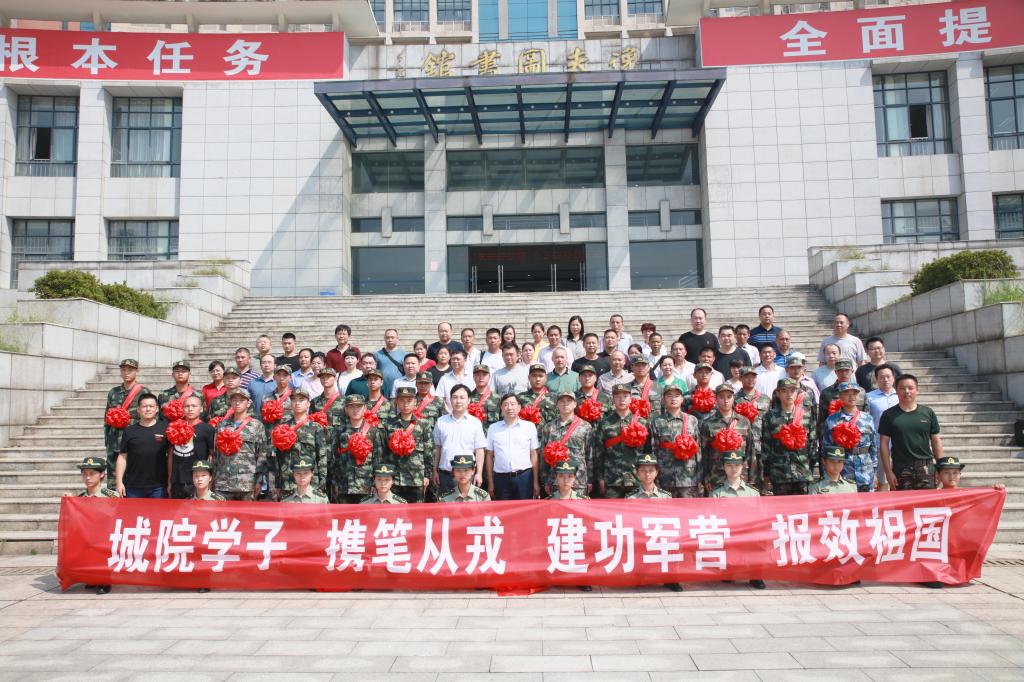 谭献良代表学校向新征入伍的全体同学表示热烈的祝贺,向新征入伍学生家长表示衷心的感谢!并对即将走上保卫祖国、建设国防征程的同学提出四点希望和要求:一要树立从军报国的理想。要牢记使命,到部队后处处严格要求自己,积极主动接受军事化管理,全面增强保卫祖国的能力,努力把自己培养成政治合格、军事过硬、纪律严明、作风优良的新一代合格军人,树立扎根军营、建功立业的雄心壮志;二要做好吃苦的思想准备。要发扬不怕苦、不怕累的精神,以苦为荣,苦中求进,尽快适应部队生活,迅速投入到火热的军营生活之中,刻苦训练,努力学习,增长才干,使自己成为军队现代化建设的优秀人才,成为让亲人骄傲、家乡自豪的合格军人;三要回报母校。要牢记母校“品学兼修,知行统一”的校训,充分发挥大学生的优势,向上向前,以实际行动为母校增光添彩,为国防建设做出应有的贡献;四是要严守纪律和规矩,在政治纪律、组织纪律、群众纪律、工作纪律、生活纪律和保密纪律上都要不越红线,不触底线。