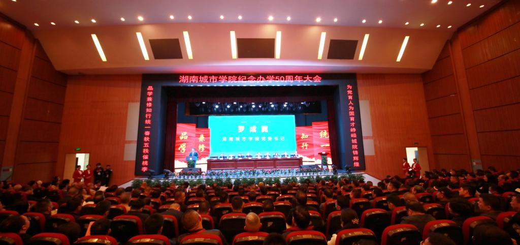 学校党委书记罗成翼致辞。他深情回顾了学校50年办学历程。合并前的两校艰苦创业、迎难而上,为学校发展积淀了厚实根基。学校初创者和历届领导者们白手起家,迎难而上,艰苦创业,坚守师范定位,培养了一大批名校长、名教师,为地方基础教育做出了重大贡献。突出城建特色,依托行业办学,对接中小城镇,为全省市县培养了大批规划建设人才,被国家教委确定为全国示范性高工专重点建设学校。新组建的城院抢抓机遇、融合奋进,为学校发展开启崭新征程。本世纪初,顺应高等教育体制改革大潮,半岛web版登录入口_半岛online(中国)应运而生。两校合并伊始,快速推进深度融合。更新教育观念,转变教育模式,顺利实现从专科到本科的转型。2012年,第二次党代会明确了“三步走”发展战略,不断完善本科教育教学体系,人才培养质量不断提高,顺利通过了教育部本科教学合格评估,推进新校区二期工程建设,完成了两校区合一,办学质量与办学效益大幅提升。新时代的城院破立并举,改革创新,稳中快进实现了跨越式发展。2016年第三次党代会以后,学校顺应教育领域综合改革的时代潮流,自主全面系统地推进整体性重塑,以大改革推进了快发展。开展“三个发展”大讨论,制定“一二三五”发展战略;目标导向分类大发展,做强城建类学科、做大信息制造类学科、提质管理服务类学科、夯实基础类学科;破立结合推进大改革,一是破分而散,立精而集、专而能的机构调整与编制改革。将16个二级学院调整为12个。二是破身份限制,立业绩导向和核心指标导向的绩效分配与目标管理考核改革,激发干事创业活力。三是破守摊平庸,立能上能下,41名处级干部主动退出领导岗位,一批80后博士教授走上重要中层岗位。四是破封闭僵化,立校企(地)合作、产教融合的应用型人才培养模式改革,构建“1234”应用型人才培养体系。五是破粗而松,立细而实、紧而准的精细管理改革,开源节流创造近2亿效益。六是破传统滞后,立应用型、现代型制度体系的大学制度改革,推进治理体系和治理能力现代化。改革创新取得大成效。4年多来,新建运动场、和学生公寓,校园道路提质、美化亮化、教学楼栋改造等基本建设,职工待遇和幸福指数显著提高,获批“湖南省新增硕士学位授予单位立项建设单位”;高水平通过了教育部本科教学工作审核评估;跻身湖南省“高水平应用特色学院”行列;2020年,列入湖南省本科第一批次招生,实现了几代城院人的梦想。