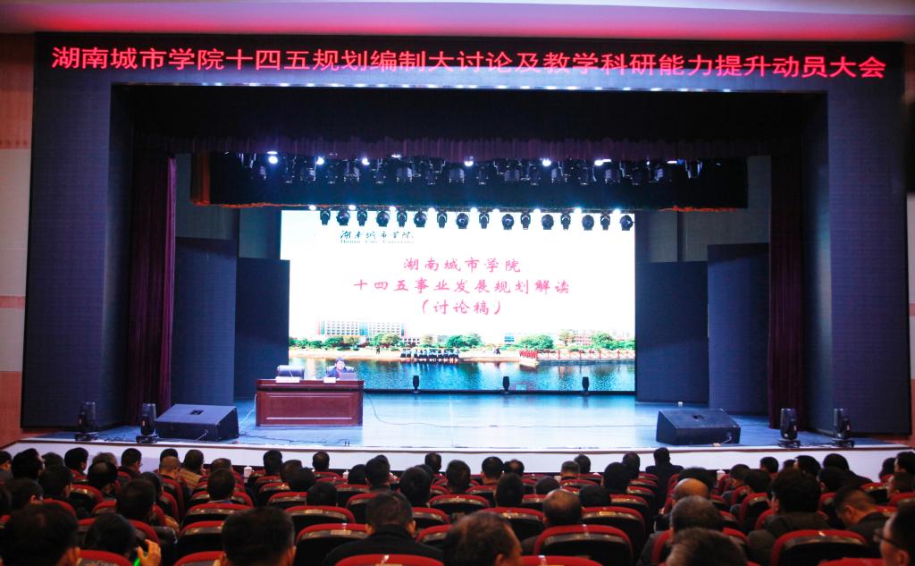 本网讯 2021年3月18日下午,学校在音乐厅召开十四五规划编制大讨论及教学科研能力提升动员大会。党委书记罗成翼详细解读学校“十四五”事业发展规划,擘画学校发展蓝图,校长李建奇提出教师要全面提升教学科研能力,助推学校高质量发展。全体校领导、副处级以上干部、系室中心主任、党支部书记、博士和副高(含)以上职称人员参加会议。